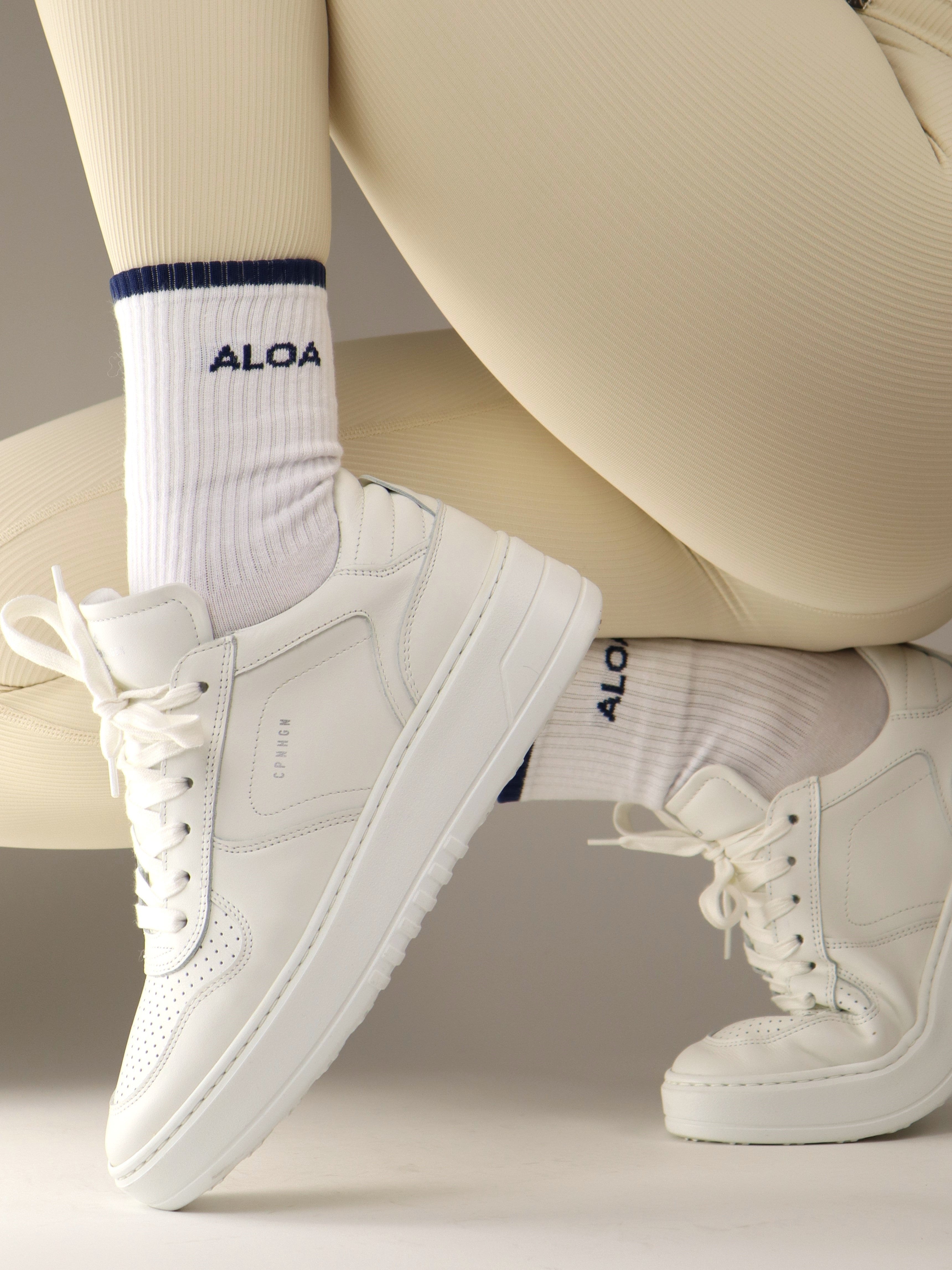 ALOA Striped Crew Socks - White/Navy